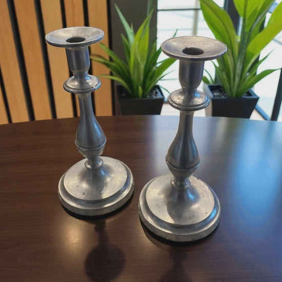 Bring a touch of timeless charm and subtle sophistication to your home with this pair of vintage Armetale Metal Candlestick Holders. Crafted with graceful curves and a soft, pewter-like finish, these sturdy beauties blend classic design with a warm, lived-in elegance. Their gently weathered surface tells stories of cozy dinners, quiet moments, and glowing candlelight through the years. Whether styled on a dining table, mantel, or shelf, they add just the right amount of old-world soul and understated sparkle. Built to last and meant to be admired, this duo proves that simple can still be stunning.